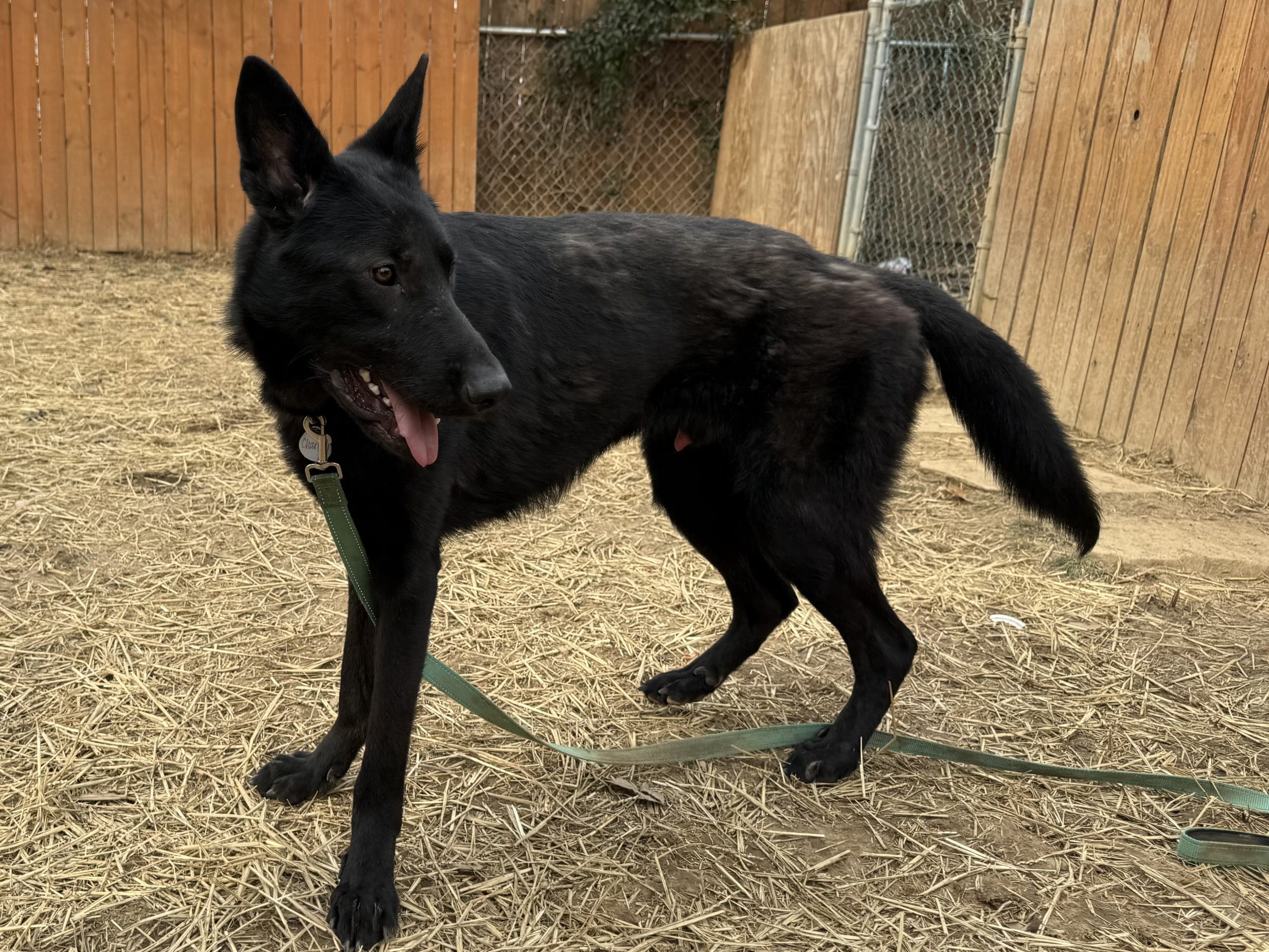 CHARCOAL is a 1 yo beautiful male German shepherd weighing about 70 pounds.  He is up to date on shots, HW neg, and neutered.  Charcoal is medium energy loving to play or go for a walk but normal level of energy in his down time.  He is a happy boy. He loves dogs.  He loves people once he knows you. Charcoal is gentle even playing with puppies, thinking he is a puppy himself.  He knows some commands and is decent on leash.  He is crate trained and generally housetrained.  Charcoal is a spectacular guy.  Charcoal was surrendered by his owner to a kill shelter in the South.  The volunteers there knew he was special and reached out to rescue to help him.  He arrived with the two puppies and play all day long with them if allowed.  He is a great dog.  If you want to adopt kindly fill out the application on our site.